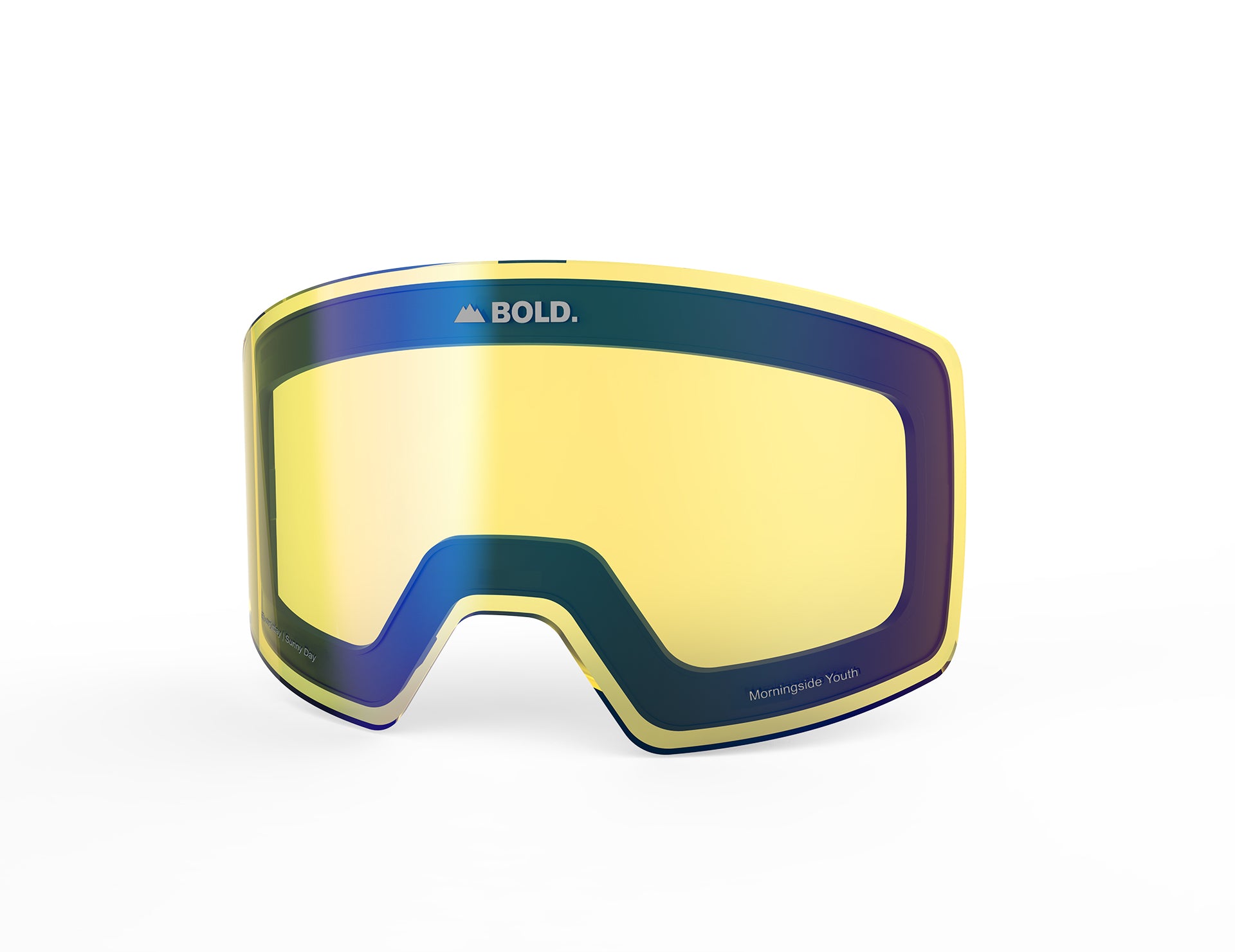 Introducing the BOLD Morningside Arctic Glow Blue / Yellow ski goggle lens, a must-have addition to your ski gear collection. This lens is specifically designed to work seamlessly with the Morningside Youth Goggle.