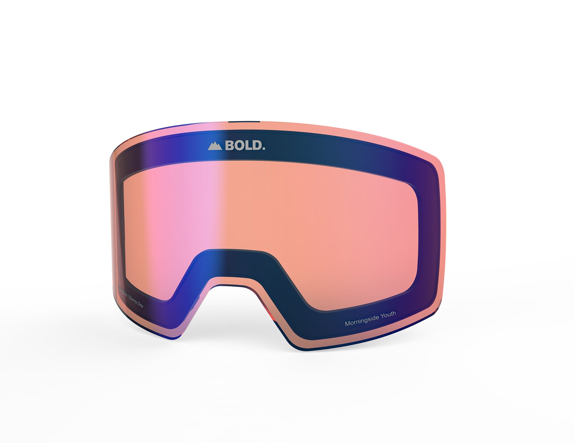 Introducing the BOLD Morningside Blue / Pink ski goggle lens, the perfect choice for low light, flat light, and stormy days. Specifically designed to pair seamlessly with the Morningside Youth Goggle, this lens ensures superior visibility in challenging weather conditions.