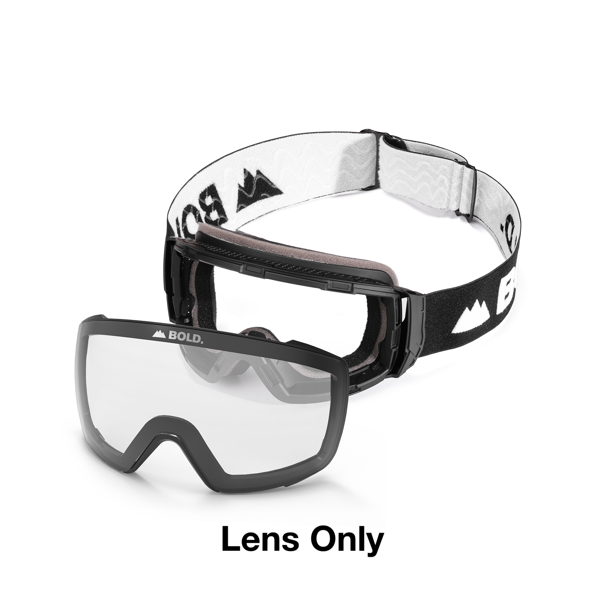 Introducing the BOLD Rambler Clear ski goggle lens, a must-have addition to your ski gear collection. This lens is specifically designed to work in conjunction with the BOLD Rambler ski goggle. This fully magnetic lens, equipped with 8 magnetics for exceptional security, offers not only superior clarity but also effortless versatility on the slopes. With its magnetic design, changing lenses becomes a snap, allowing you to adapt seamlessly to varying weather conditions.