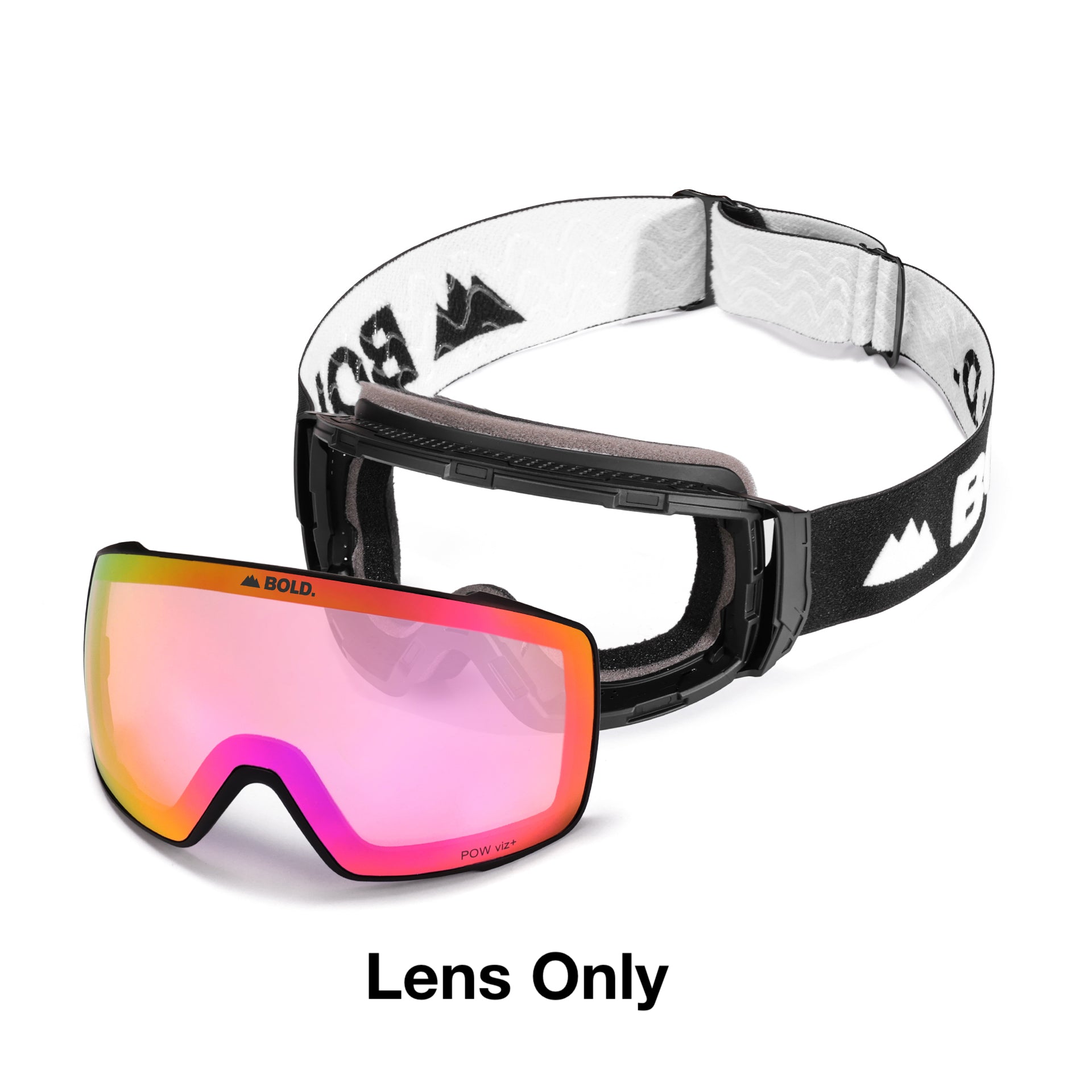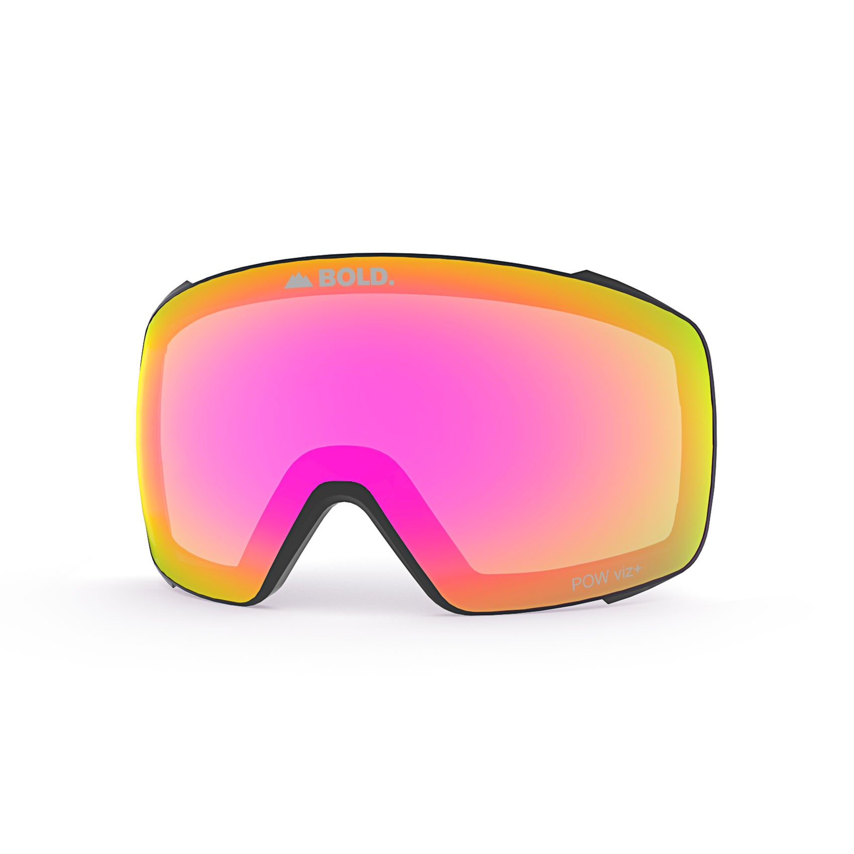 Introducing the BOLD Rambler Cherry Pink ski goggle lens, a must-have addition to your ski gear collection. This lens is specifically designed to work in conjunction with the BOLD Rambler ski goggle. This fully magnetic lens, equipped with 8 magnetics for exceptional security, offers not only superior clarity but also effortless versatility on the slopes. With its magnetic design, changing lenses becomes a snap, allowing you to adapt seamlessly to varying weather conditions.