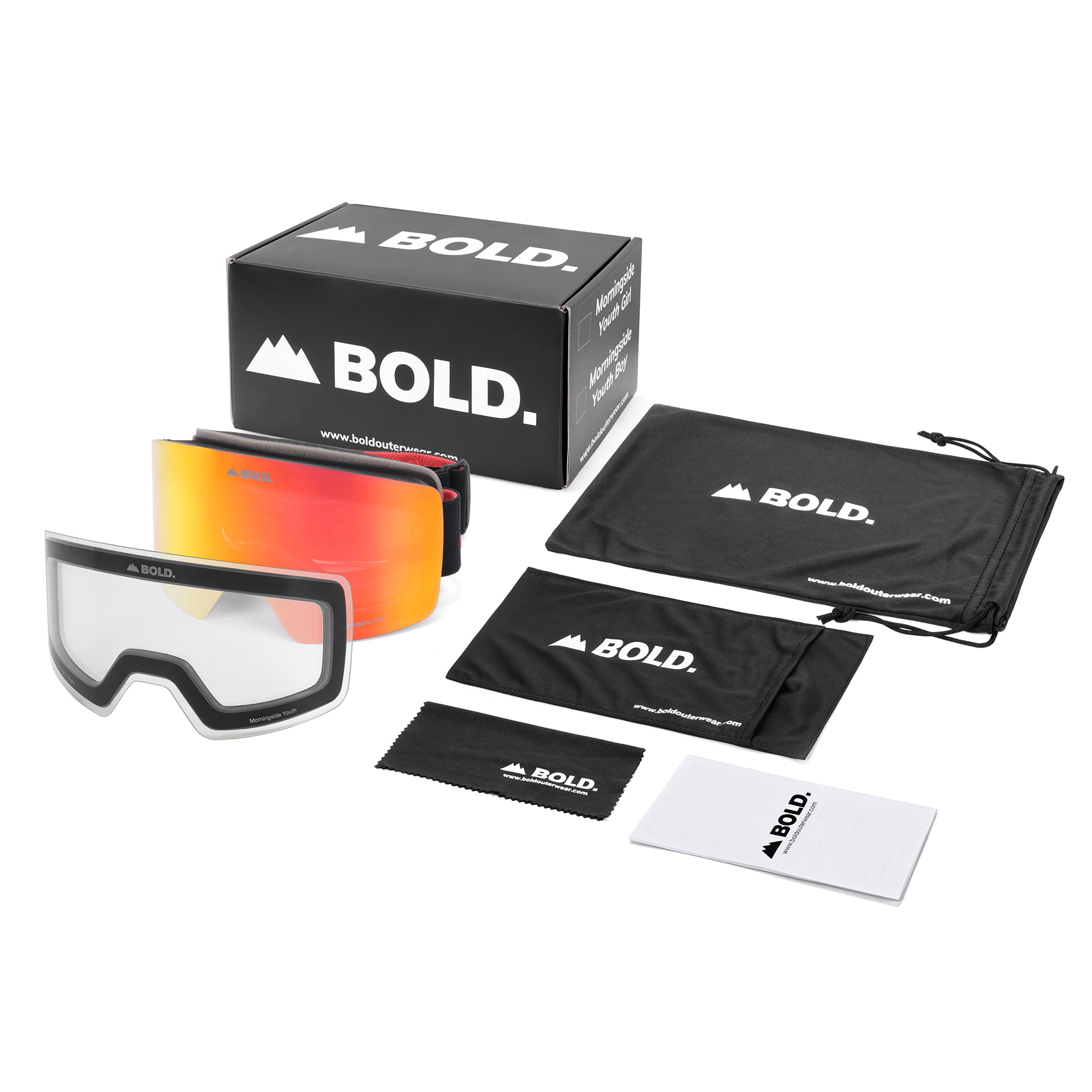 - Accessories: Ski Goggle Pouch, Lens Pouch & Lens Cloth
